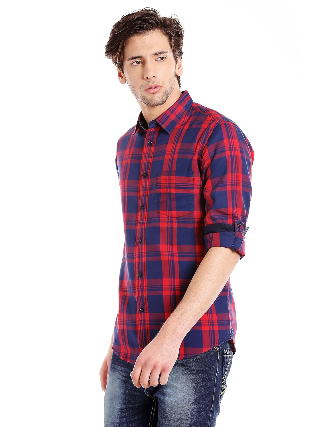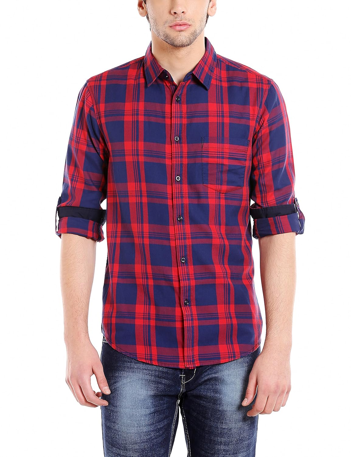 Dennis Lingo Men's Cotton Casual Shirt (Red_Medium)